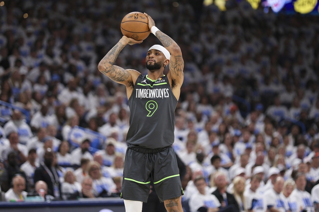 森林狼的外线空间和投射能力显然比掘金更好,除了戈贝尔,8人轮换主体阵容7个点都有三分射程。森林狼上半场领先雷霆的关键是三分球28中10,比雷霆多命中了7记三分,破解雷霆防守的方式简单粗暴,华子/兰德尔吸引夹击后团队转移球空位三分扫射,显然对自己的投射能力十分自信。