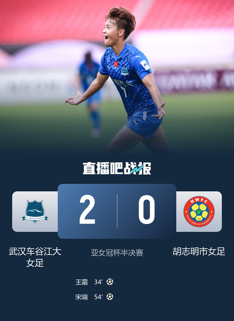 下半场补时6分钟,武汉女足2-0胡志明市女足。
